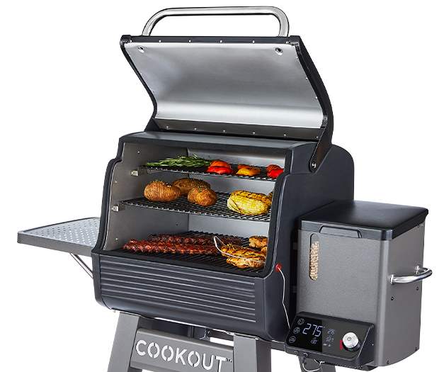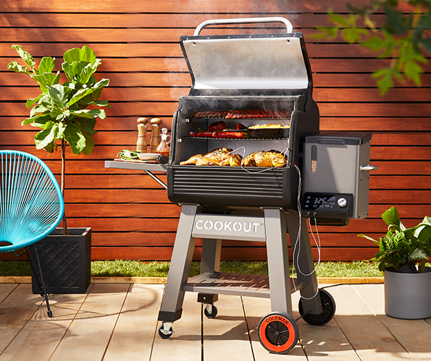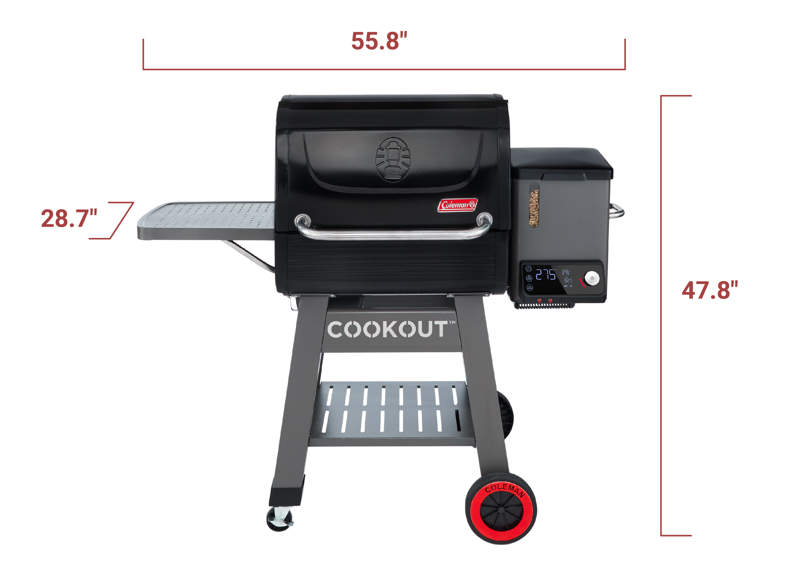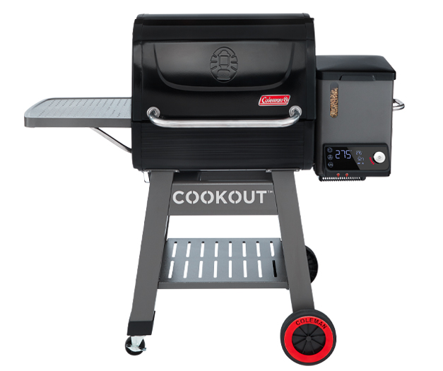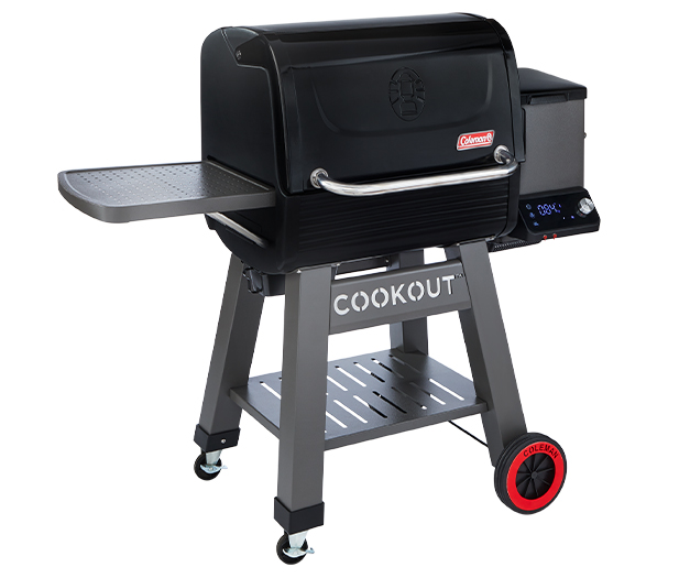 Enjoy a spacious cooking area of 1035 sq.in (7.1 sq. ft.) with 3 tiers of durable porcelain-coated steel cooking grates. The grill includes two meat probes for precise temperature monitoring via the LED PID controller. Whether you're barbecuing, baking, grilling, roasting, braising, or smoking, the Coleman Cookout™ Pellet Grill can do it all.
