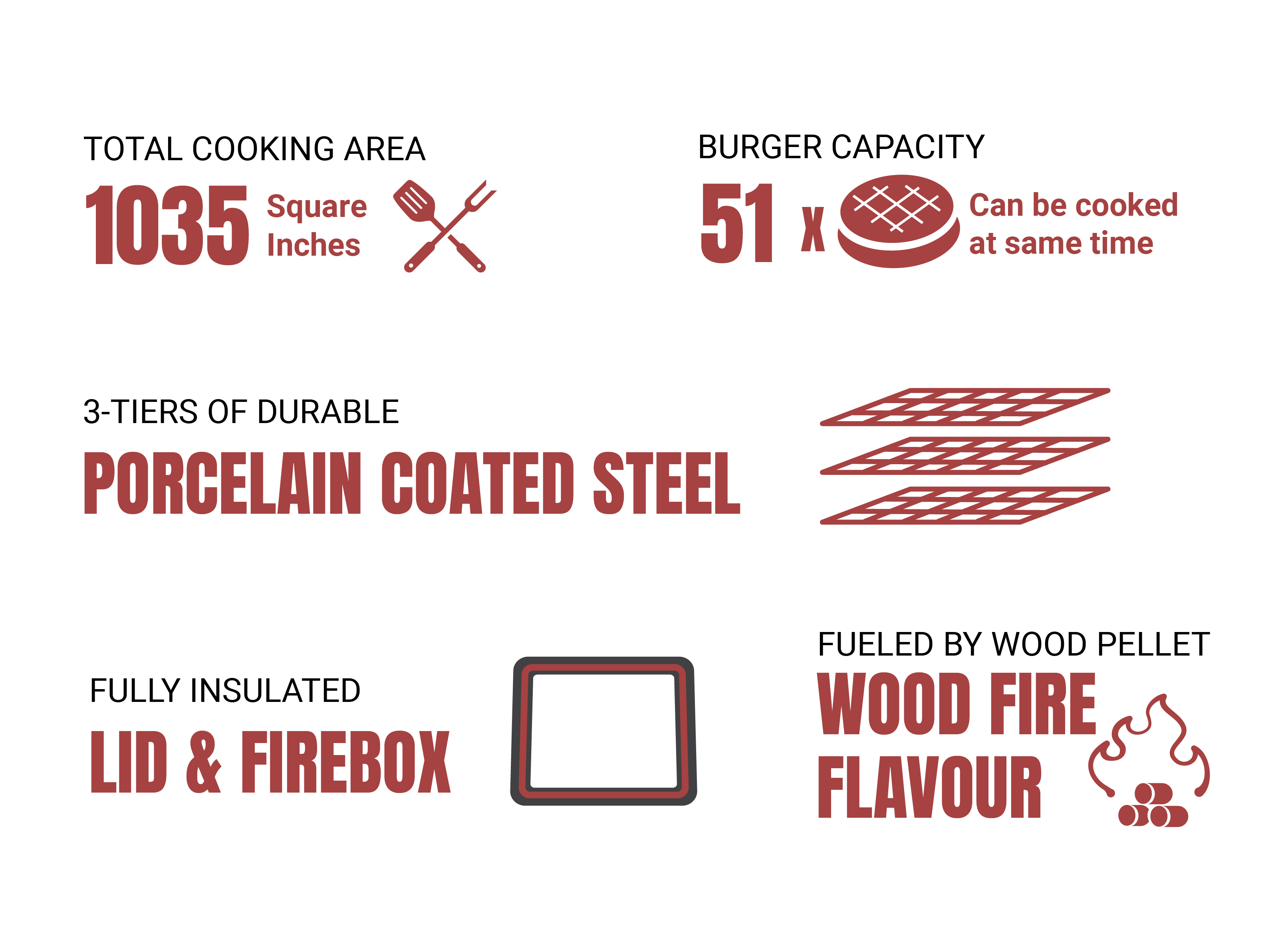 - Fueled by 100% all-natural BBQ hardwood pellets