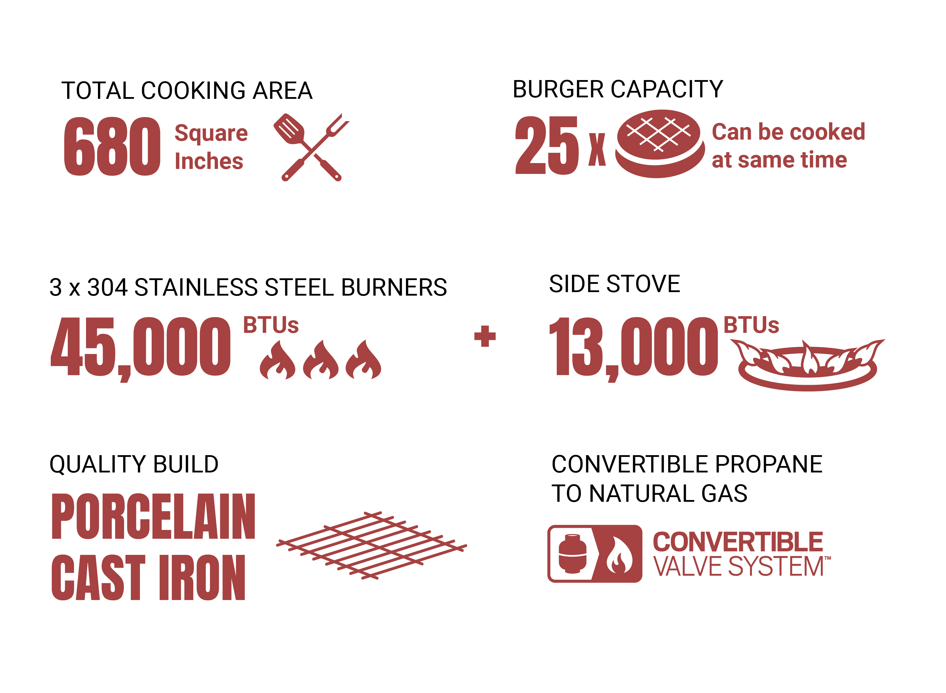 - Cooksurface: 650 SQ.IN.