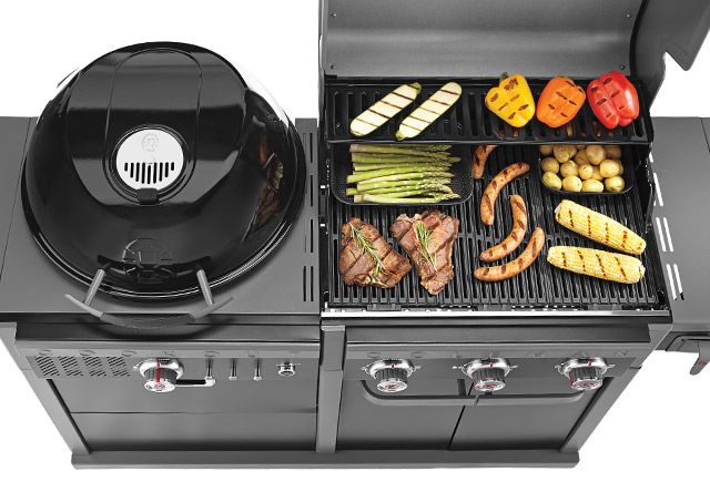 - 2 in 1 full-size grill and charcoal kettle