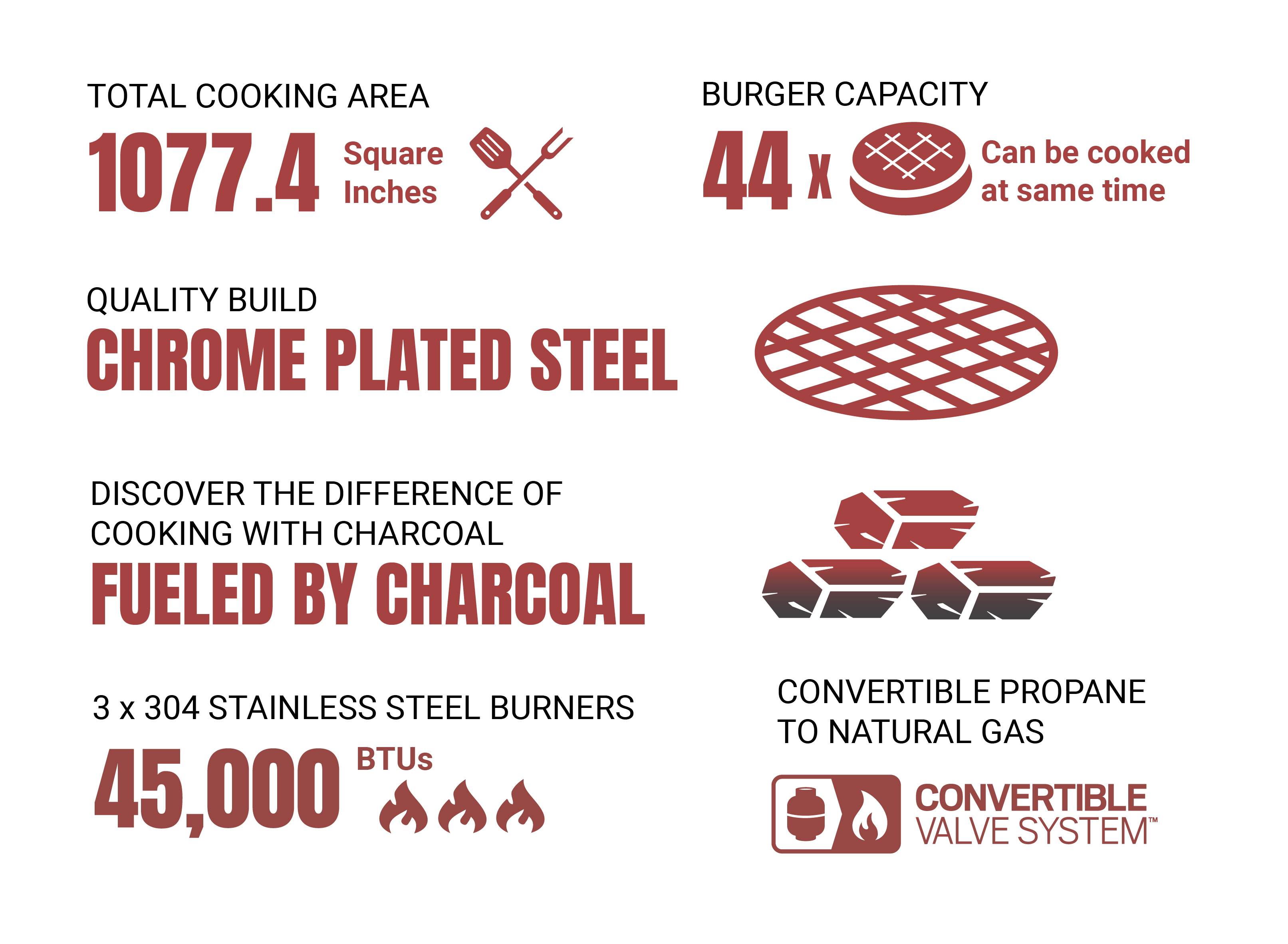 - Cooksurface: 1030 SQ.IN.